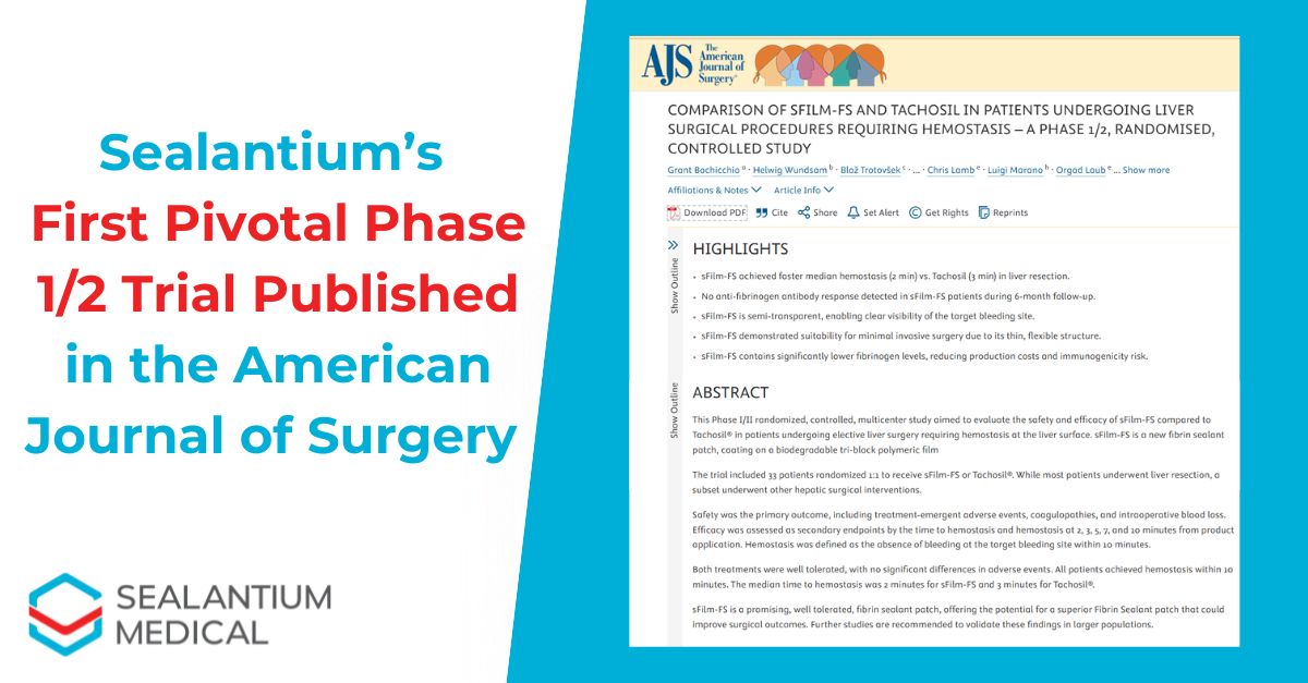 Sealantium Medical announces the successful completion of its multicenter Phase I/II clinical trial.